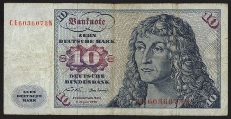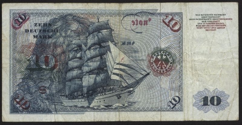 LIQUIDATIONSPOSTEN.1970 10 Deutsche Mark, mit Doppeldruck auf der Rückseite (Kopf von Dürer) mit Gebrauchsspuren. Der Geldschein wurde nicht aussortiert und war im normalen Umlauf. Wahrscheinlich sind nur wenige Scheine in dieser Art vorhanden. Für den Banknotensammler Deutschland eine einmalige Gelegenheit so eine Abart zu erwerben. SELTEN!!!