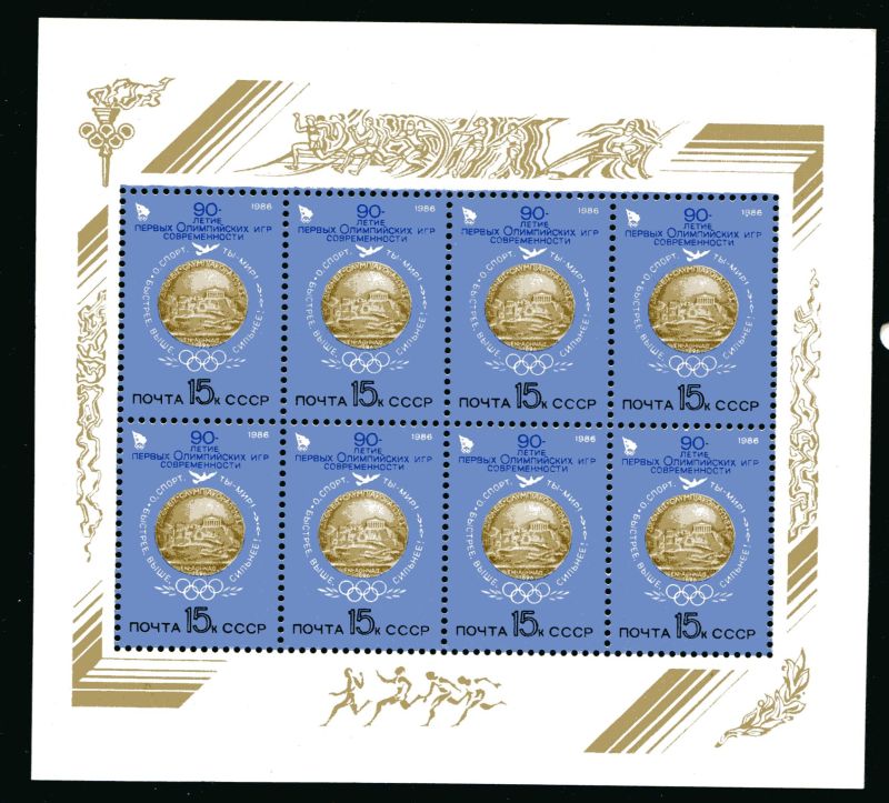 LIQUIDATIONSPOSTEN. 1986 Mi.Nr. 5572 , Sowjetunion im Kleinbogen. Olympische Spiele der Neuzeit. Auflage nur 120 000 Kleinbogen.