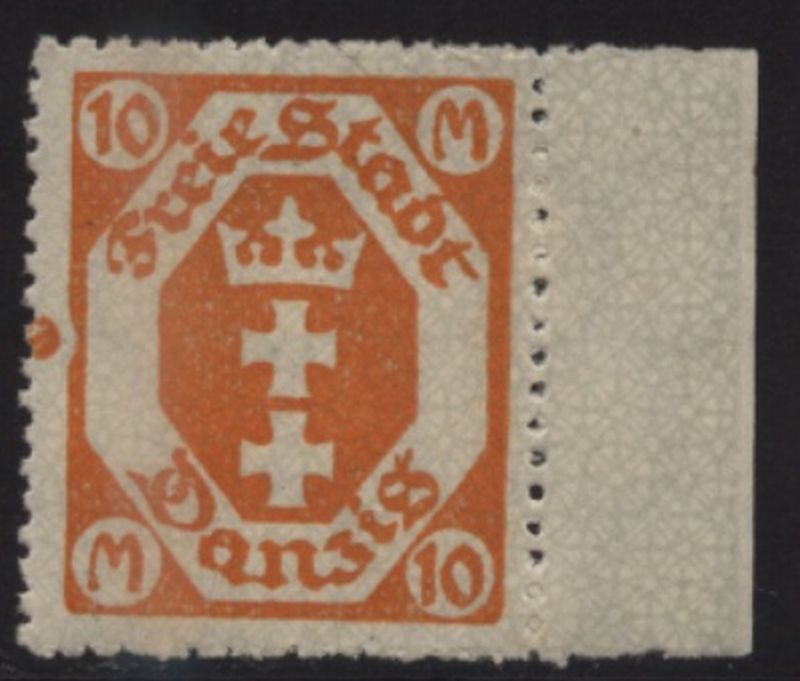 1923 Mi.Nr. 125 , 10 Mark rechter Seitenrand, Bogen in der linken Randlinie und gleichfarbiger Punkt im Rand. Eine interessante Abart. SELTEN.