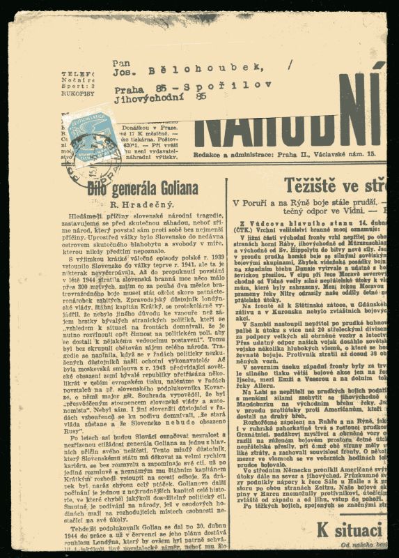 1945 Mi.Nr. 118 , 5 H Zeitungsmarke, EF auf Zeitungsblatt nach Prach, natürliche Zeitspuren.