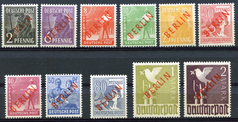 1949 Mi.Nr. 21/34 , ex. Rotaufdruck mit kaum sichtbarem Falzrest, ohne 15, 20 und 60 Pfennig 3 unbedeutende Marken fehlen. Mi.(545.--)Euro.