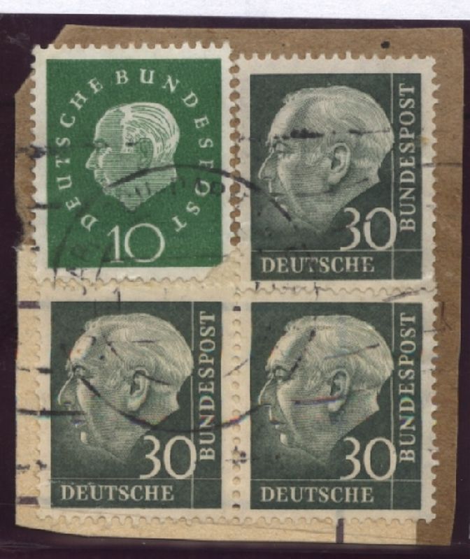 1957 Mi.Nr. 259xw , , , 30 Pfennig Heuss II und Zusatzfrankatur. Mi.(130.--)Euro.