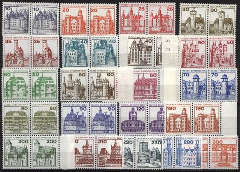 Burgen und Schlösser Berlin 10 Pf. bis 3 DM , , teils mit Seitenrand, 21 Werte, auf eine Steckkarte, in tadelloser Erhaltung.