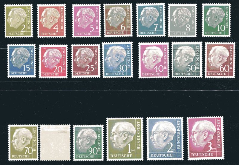 1954 Mi.Nr. 177/96 , Heuss (I), kompletter Satz. 80 Pf. Falz. Mi. (280.--)Euro.