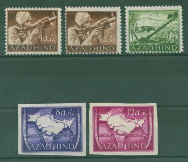 1943 Mi.Nr. IA (2 Marken) VIIIA, V/VIB , Nationales Indien, 5 Werte alle mit Borkengummi. SEHR SELTEN!