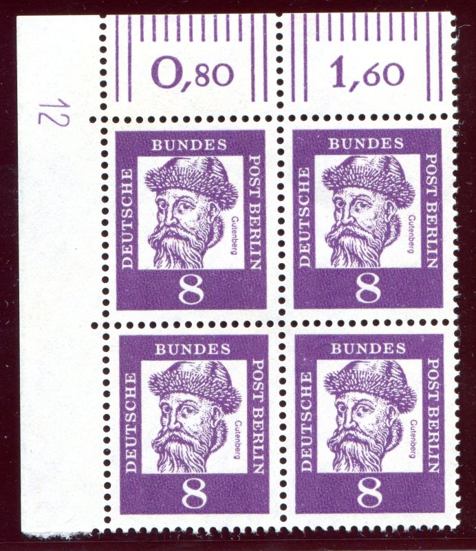 1961 Mi.Nr. 201 , , 8 Pfennig Bedeutende Deutsche. Bogenecke oben links, mit (DZ) 12.