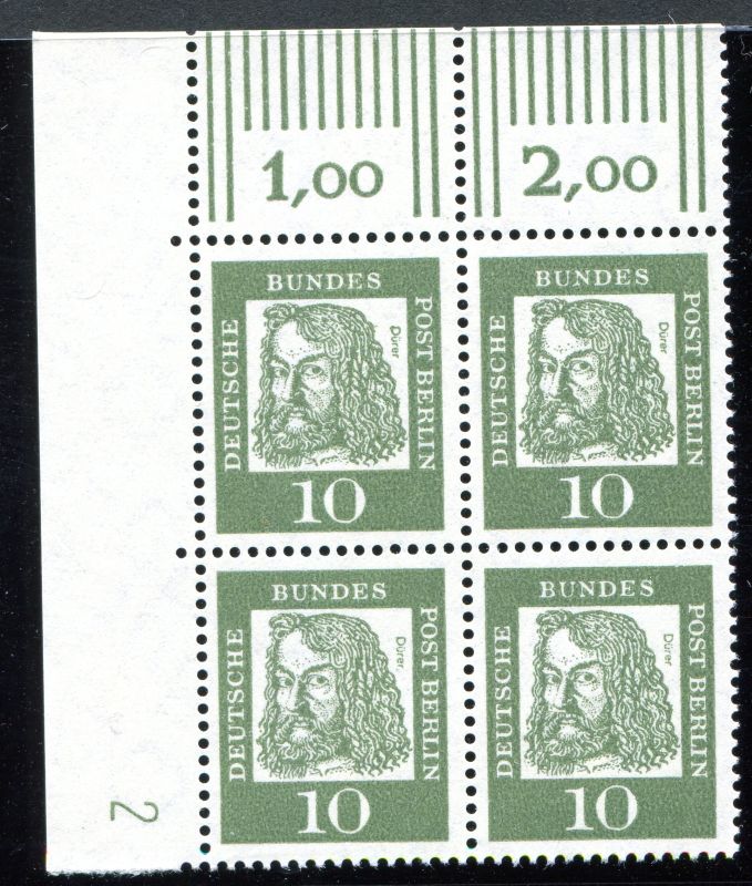 1961 Mi.Nr. 202 , ,10 Pfennig Bedeutende Deutsche. Bogenecke oben links, mit (DZ) 2.