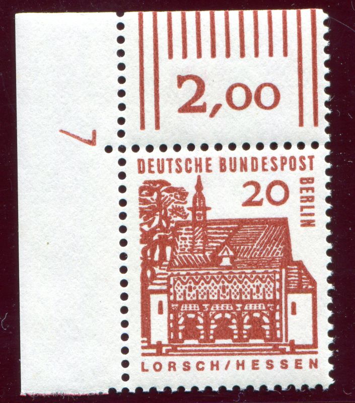 1964 Mi.Nr. 244 , , 20 Pfennig Kleine Bauwerke. Bogenecke oben links, mit (DZ) 7.