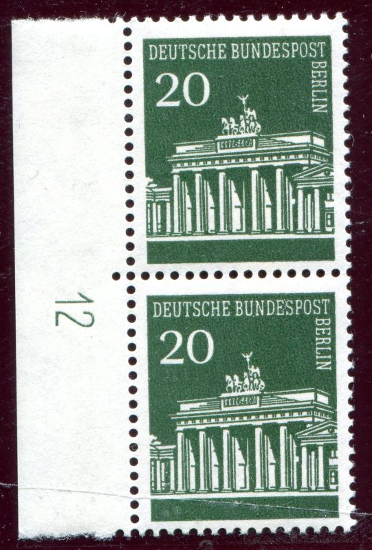 1966 Mi.Nr. 287 ,, 20 Pfennig Brandenburger Tor, senkrechtes Pärchen mit Seitenrand links, mit (DZ) 12.