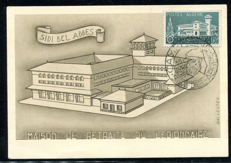 1956 , , Bildpostkarte Gebäude, französische Legion mit Sondermarke und Sonderstempel "SIDI - BEL - ABBES".