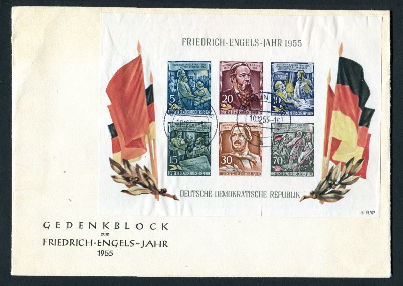 1955 Block 13 , , EF, Friedrich Engels Block mit Tagesstempel Berlin 10.12.55 Mi. (500.--)Euro.