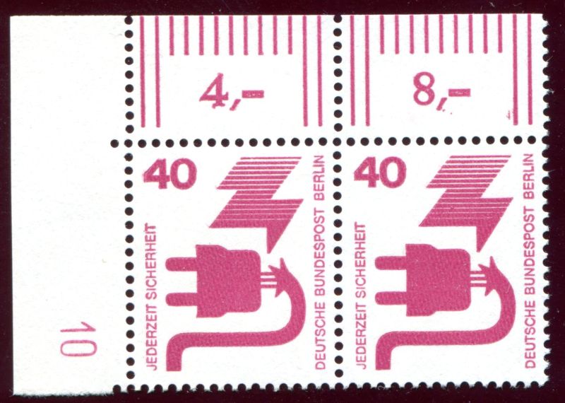 1971 Mi.Nr. 407 , , 40 Pfennig Unfallverhütung BERLIN mit DZ (10), waagerechtes Pärchen vom Oberrand.
