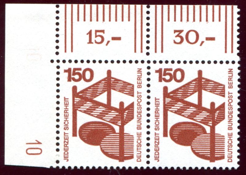 1971 Mi.Nr. 411 , , 150 Pfennig Unfallverhütung BERLIN mit DZ (10), Pärchen vom Oberrand, linke Bogenecke.