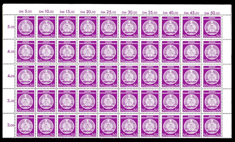 1954 Mi.Nr. 26xI XII , 50 Pfennig 100 Marken im kompletten Bogen mit Druckvermerk DV. Bogen mittig gefaltet. Mi.(330.--Euro).