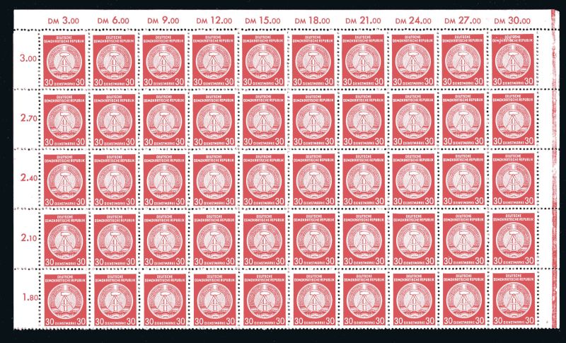 1954 Mi.Nr. 24xI XII , 30 Pfennig 100 Marken im kompletten Bogen ohne Unterrand. Bogen mittig gefaltet und 5 Marken angetrennt. Mi.(600.--Euro).