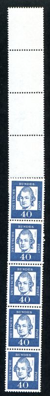 1960 Mi.Nr. 355y 40 Pfennig Bedeutende Deutsche 54, 5 Werte, 1 Marke mit Nr. und 4 Leerfelder.