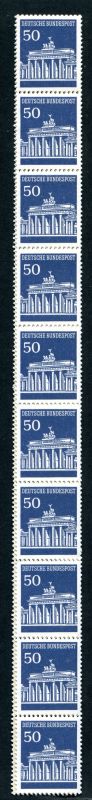 1966 Mi.Nr. 509 , 50 Pfennig Brandenburger Tor im 20er Streifen mit 3 Zählnummern auf der Rückseite.
