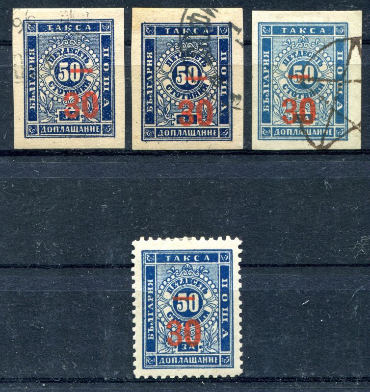 1895 Mi.Nr. 11a/b , und 12a , 4 Portomarken. Nr. 11a alle breitrandig geschnitten. Nr. 12a gut gezähnt.