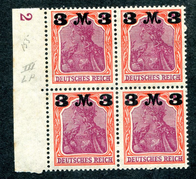 1921 Mi.Nr. 155I , , vom linken Seitenrad, rechte Aufdruck - Wertziffer "3" tiefer stehend. Mi.(200.--Euro)