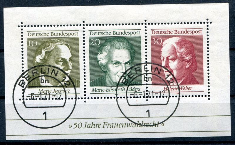 1969 Block 5 , mit fehlendem rechten Zähnungsloch rechts unten, mit Berlinstempel 6.1.1971