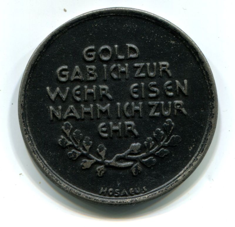 1916 Medaille in schwarz. "GOLD GAB ICH ZUR WEHR EISEN NAHM ICH ZUR EHR".