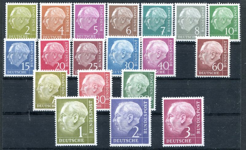 1954 Mi.Nr. 177/196 , Bundesrepublik Heuss I Satz ohne 50 Pfennig.
