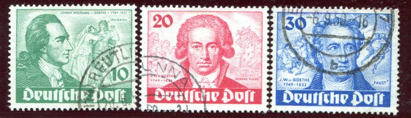 1949 Mi.Nr. 61/63 , Goethe, sauberer Rundstempel, kompletter Satz. Mi.(180.-)Euro.