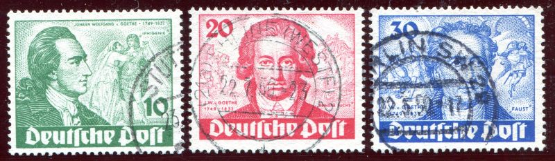 1949 Mi.Nr. 61/63 , Goethe, sauberer Rundstempel, kompletter Satz. Mi.(180.-)Euro.