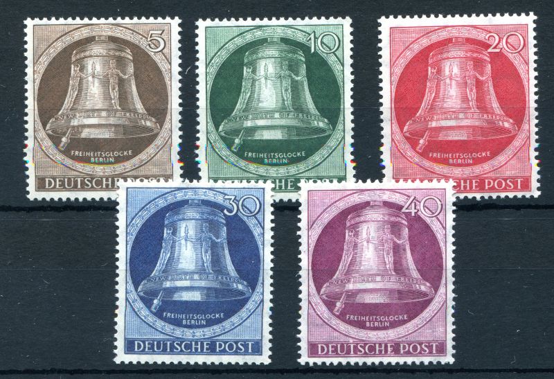1951 Mi.Nr. 75/79 , Glocke Klöppel links, kompletter Satz, alle 5 Werte .(100.--)Euro.