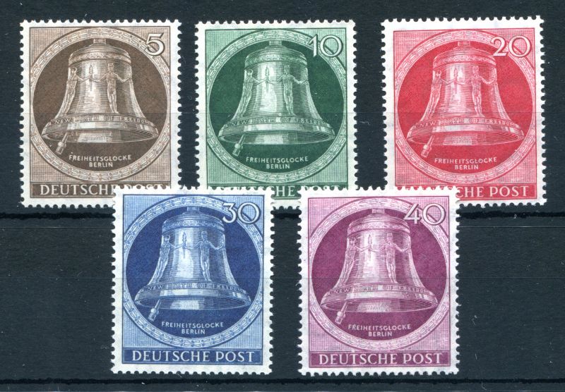 1951 Mi.Nr. 75/79 , Glocke Klöppel links, kompletter Satz, alle 5 Werte .(100.--)Euro.