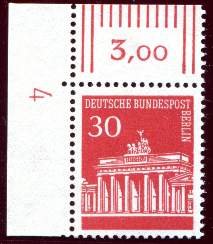 1966 Mi.Nr. 288 , 30 Pfennig Brandenburger Tor, Bogenecke oben links mit (DZ) 4