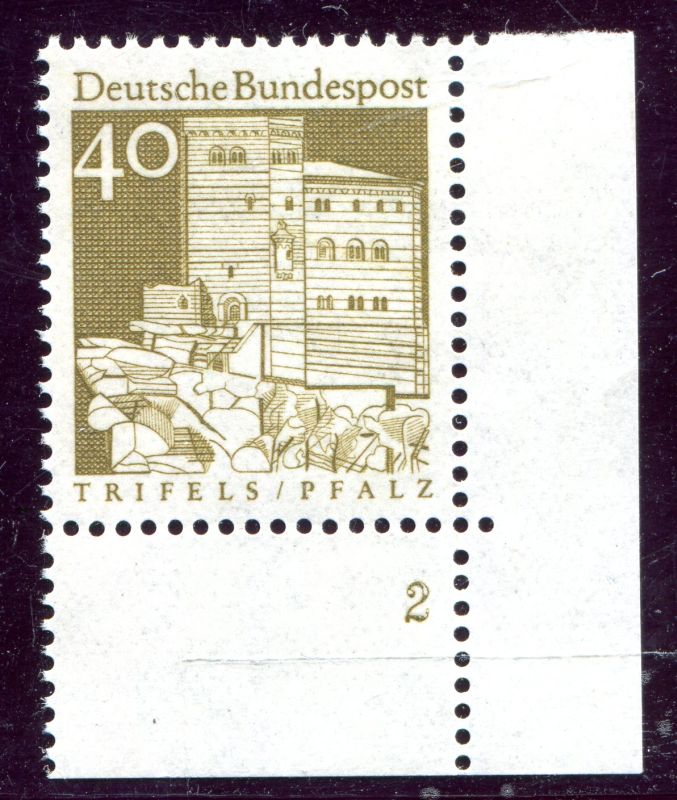 1964 Mi.Nr. 493 , , Bauwerke II, 40 Pfennig, aus Bogenecke rechts unten mit Platten Nummer 2