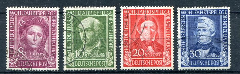 1949 Mi.Nr. 117/20 , Wohlfahrt, Helfer der Menschheit, kompletter Satz. Rundstempel. Mi.(170.--)Euro.
