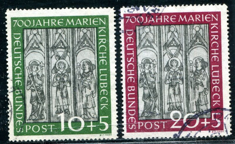 1951 Mi.Nr. 139/40 , 700 Jahre Marienkirche Lübeck, kompletter Satz. Rundstempel. Mi.(160.--)Euro.