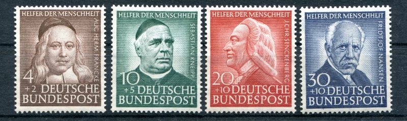 1953 Mi.Nr. 173/76 , Wohlfahrt. Helfer der Menschheit, kompletter Satz. Mi.(90.--)Euro.