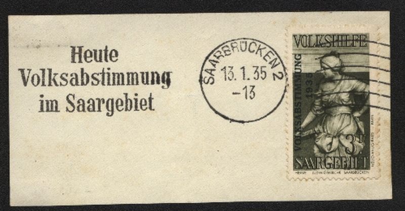 1934 Mi.Nr. 204 , , Saargebiet Volkshilfe, mit Sonderstempel "Heute Volksabstimmung im Saargebiet 13.1.35"