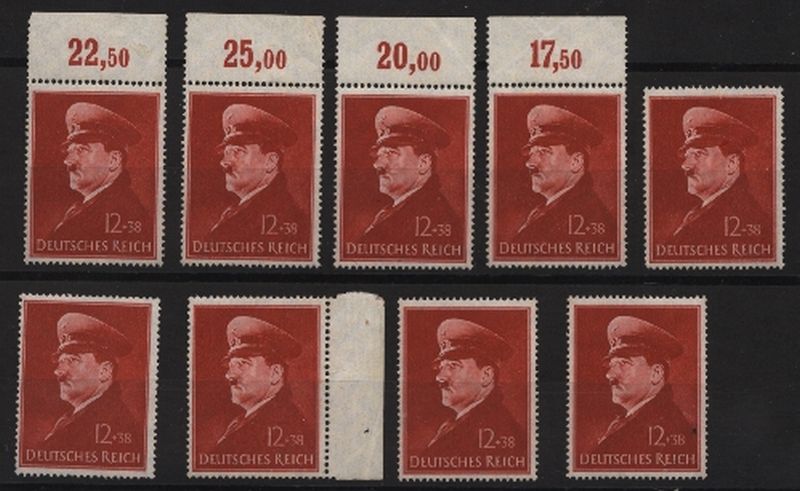 1941 Mi.Nr. 772X , 52. Geburtstag von Adolf Hitler, 9 Marken. Mi.(90.--)Euro.