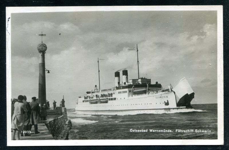 1931 Fährschiff SCHWERIN vorm Ostseebad Warnemünde, befördert nach Schweden. Nr. 7065