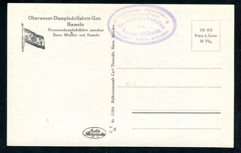 Oberweser - Personen - Dampfschifffahrt bei Höxter. Karte ungebraucht. Nr. 7074