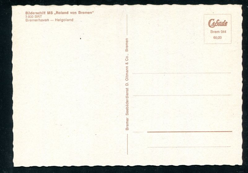 Bäderschiff MS "Roland von Bremen" auf Hoher See noch Helgoland. Farbkarte ungebraucht. Nr. 7081