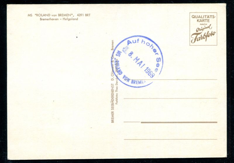 Bäderschiff MS "Roland von Bremen" auf Hoher See noch Helgoland. Farbkarte ungebraucht. Nr. 7082
