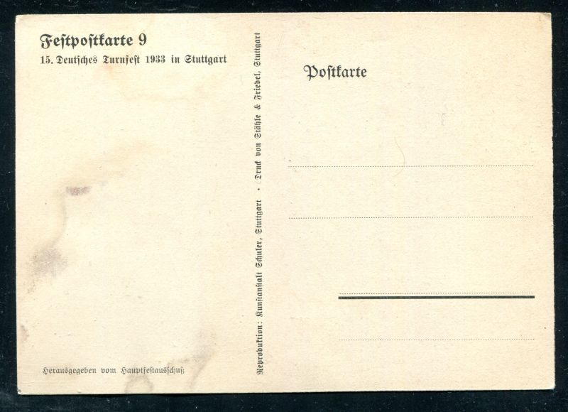 1933 STUTTGART. 15. Deutsches Turnfest 1933 in Stuttgart 22.-30. Juli, ungebraucht. Nr. 8076