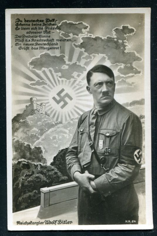 Reichskanzler ADOLF HITLER "Selbstbildnis" mit Spruch: Du deutsches Volk, - Erkenne deine Zeichen, Es lösen sich die Fesseln schwerer Not - Der Freiheits - Sonne Muß die Knechtschaft weichen. - Ein neues Deutschland Grüßt das Morgenrot! Nr. 8080