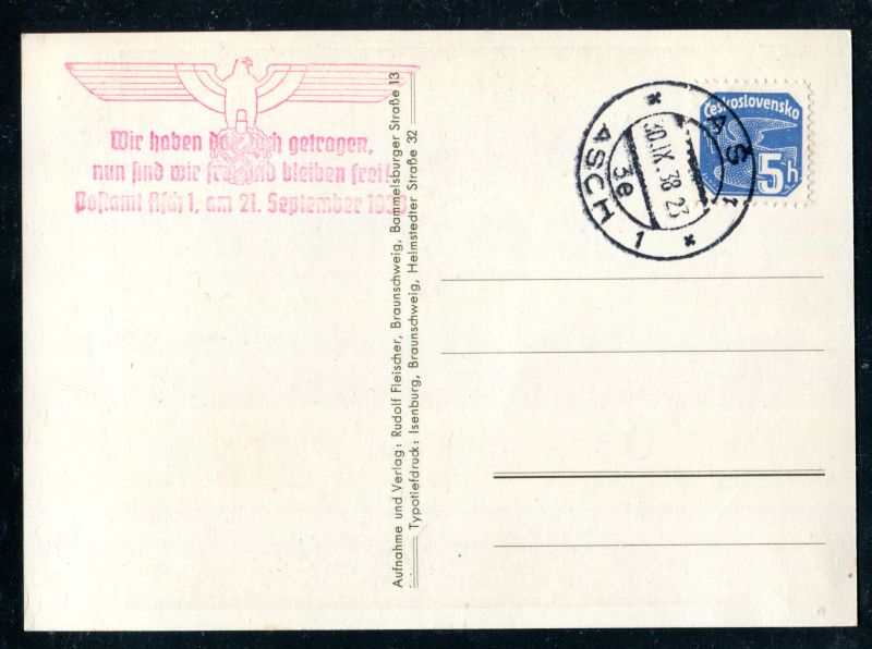 1938 Ihr Stabsführer mit Marke Tschechoslowakei mit Stempel "ASCH 30.IX.38". Nr. 8081