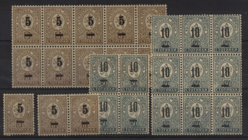 1901 Mi.Nr. 45/47 , Freimarken: Wappenlöwe mit Aufdruck, in Einheiten , , 9er Block 10er Block, 12 Sätze, zum Teil leichte Gummimängel.