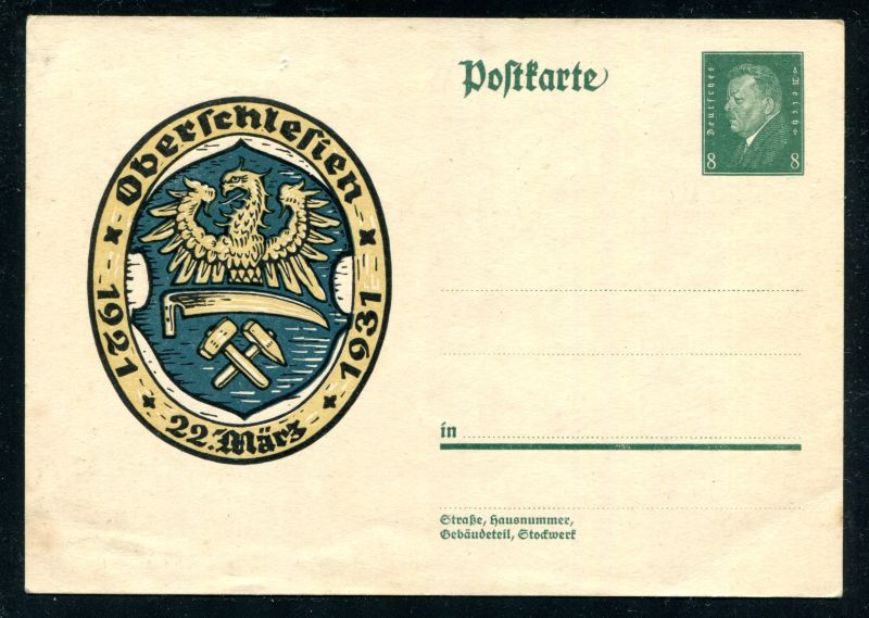P 190 Ganzsache, Postkarte. Oberschlesien, ungebraucht. Nr. 9000