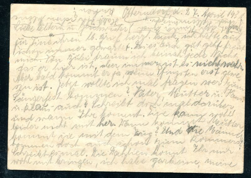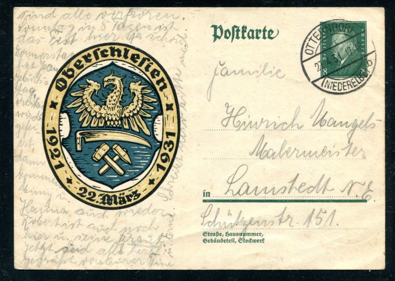 P 190 Ganzsache, Postkarte. Oberschlesien, echt befördert Tagesstempel ab Otterndorf 27.4.31 nach Lamstedt. Nr. 9005