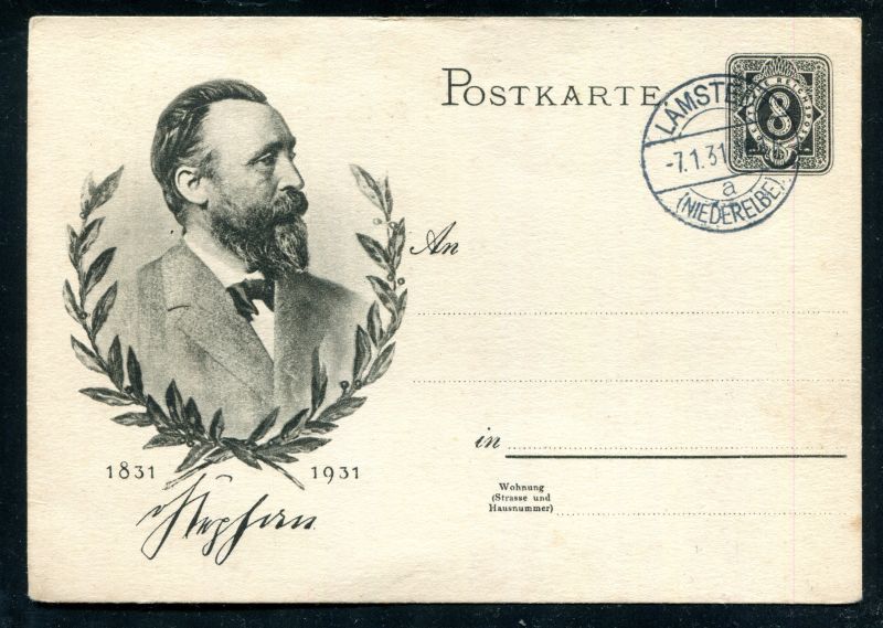 P 211 Ganzsache, Postkarte. 1931 Sonderpostkarte "STEPHAN", mit Tagesstempel Lamstedt 7.1.31. Nr. 9017