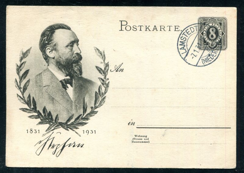 P 211 Ganzsache, Postkarte. 1931 Sonderpostkarte "STEPHAN", mit Tagesstempel Lamstedt 7.1.31. Nr. 9018