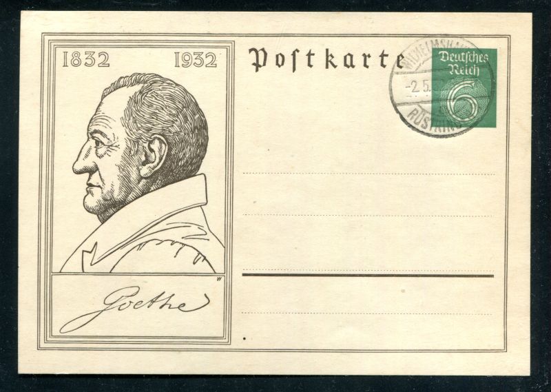 P 213 Ganzsache, Postkarte, Goethe TODESTAG 1932 gestempelt 2.5.32. Nr. 9025